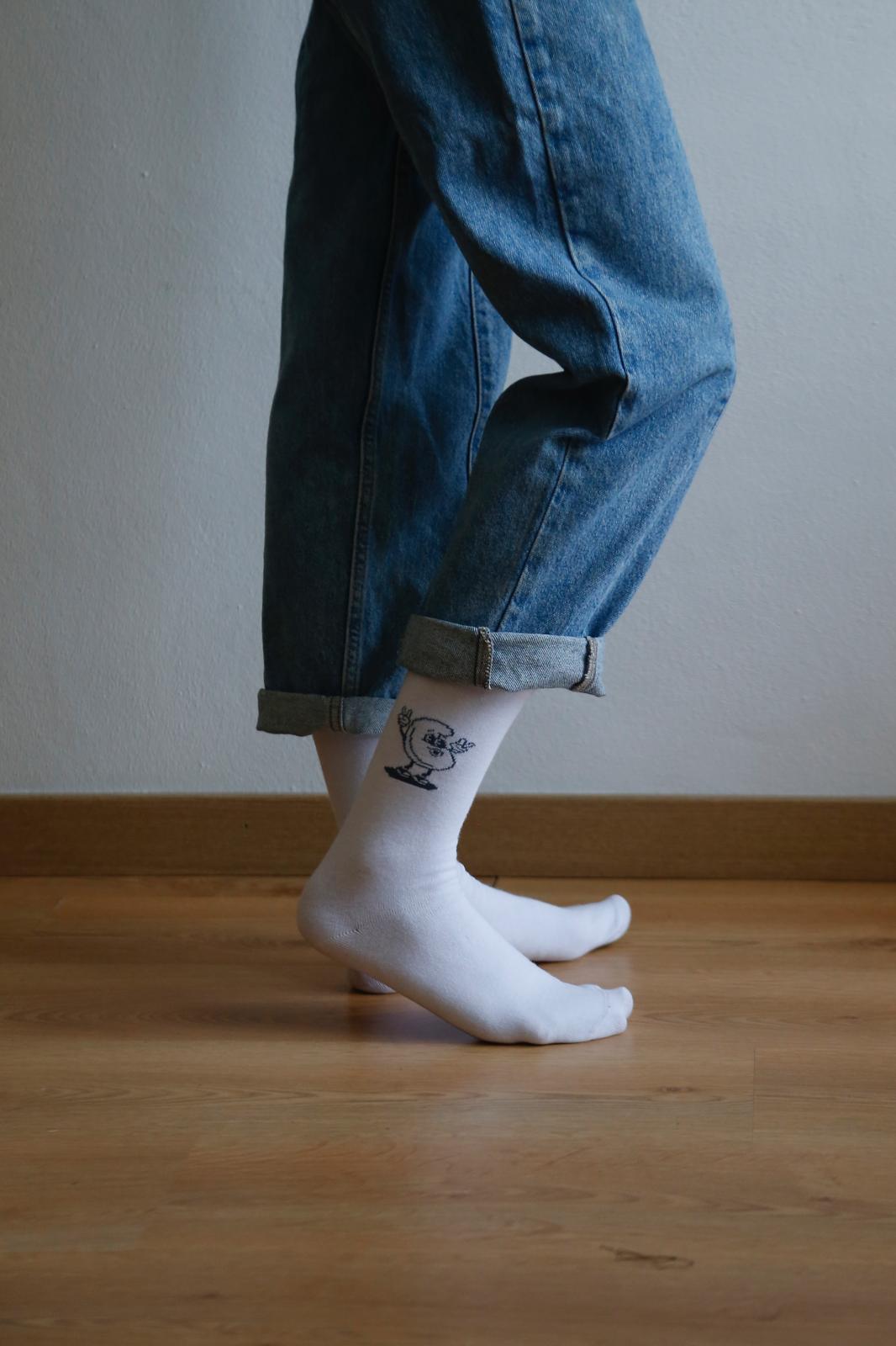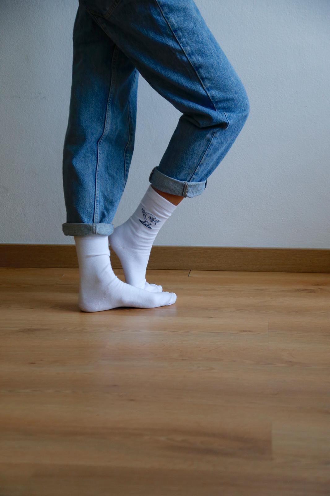 Leva o espírito Moza contigo… até aos pés! As meias brancas de caju da coleção Visto Moza foram pensadas para dar um toque original, divertido e cheio de estilo ao teu dia. O divertido caju em azul-petróleo é a estrela: uma ilustração cheia de personalidade que combina com tudo e transforma qualquer look.
